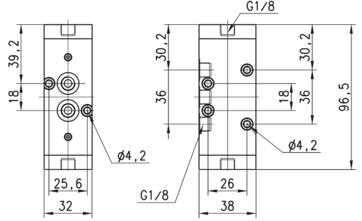 Пневмораспределители могут быть взаимозаменяемыми в случае отсутствия необходимости монтажа на плиту.
