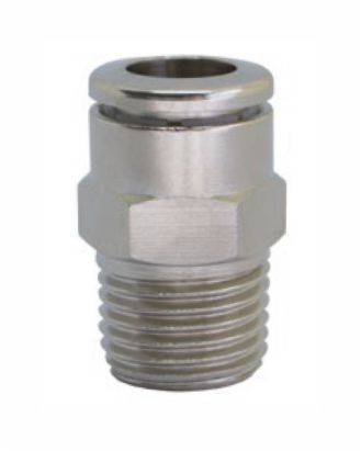 Пневматический прямой цанговый фитинг из никелированной латуни наружная резьба R1/4" наружный диаметр трубки 8 мм